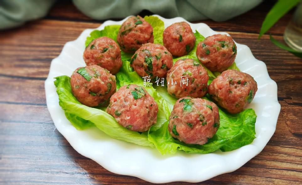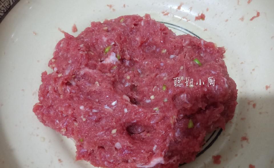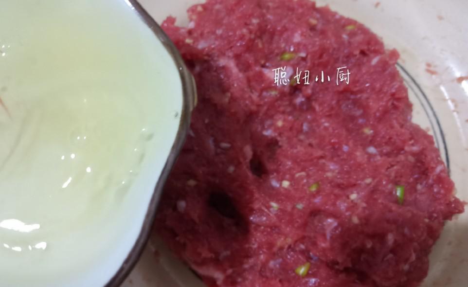 现在市场上有很多注水牛肉,所以馅料里没有加水。如果牛肉很干,可以多加点水,让肉丸更加多汁。