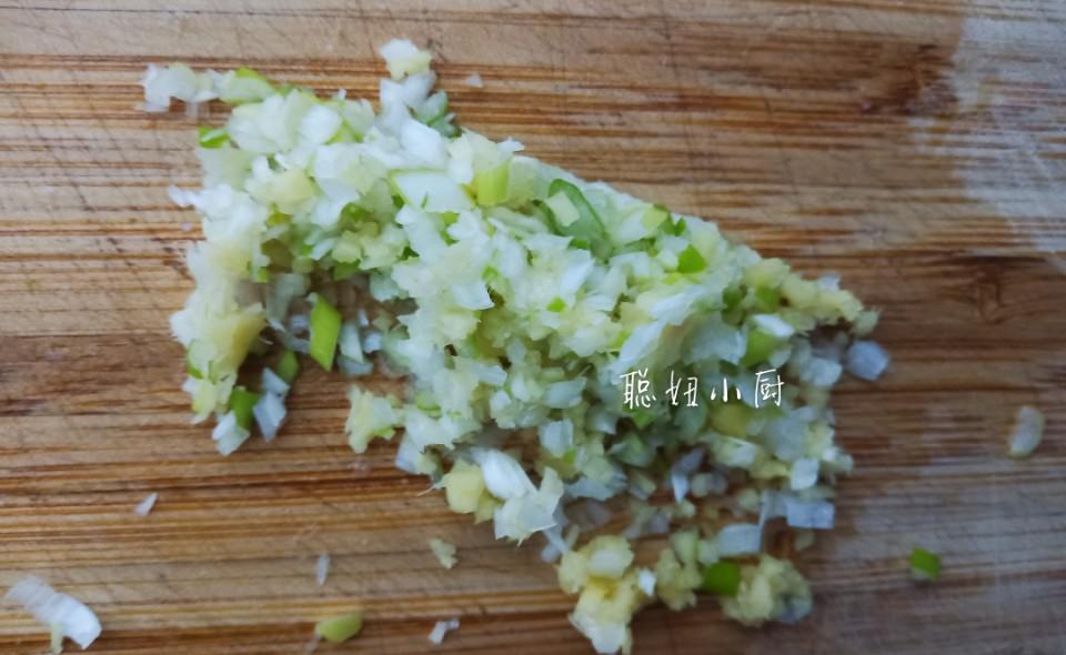 1.将牛肉剁成肉末(也可以用绞肉机绞碎)。用手切的话质感更好(我用的牛肉已经提前泡过水了)。将洋葱和姜切成细末。尽量做到最好。
