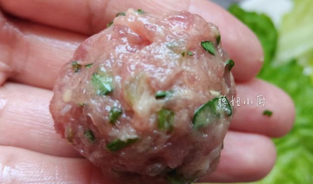 挤肉丸的时候手上抹一点油,可以防止肉馅粘手。