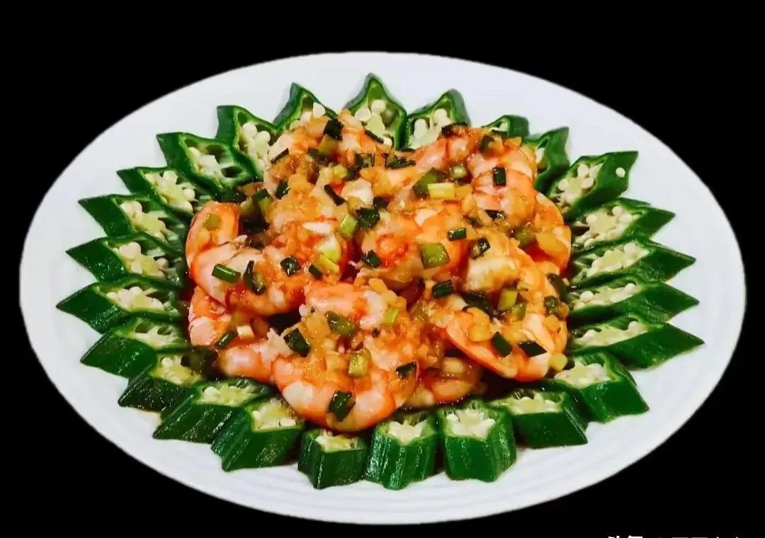 花开虾旺,寓意鲜花盛开,财源广进,幸福美满。搭配秋葵的清爽口感,让人胃口大开。