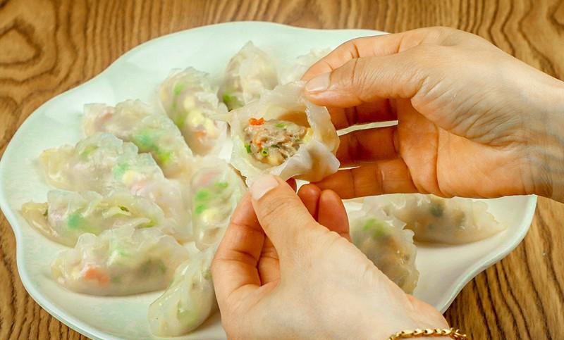 1。蒸虾饺子是白色的,它将迅速变得透明