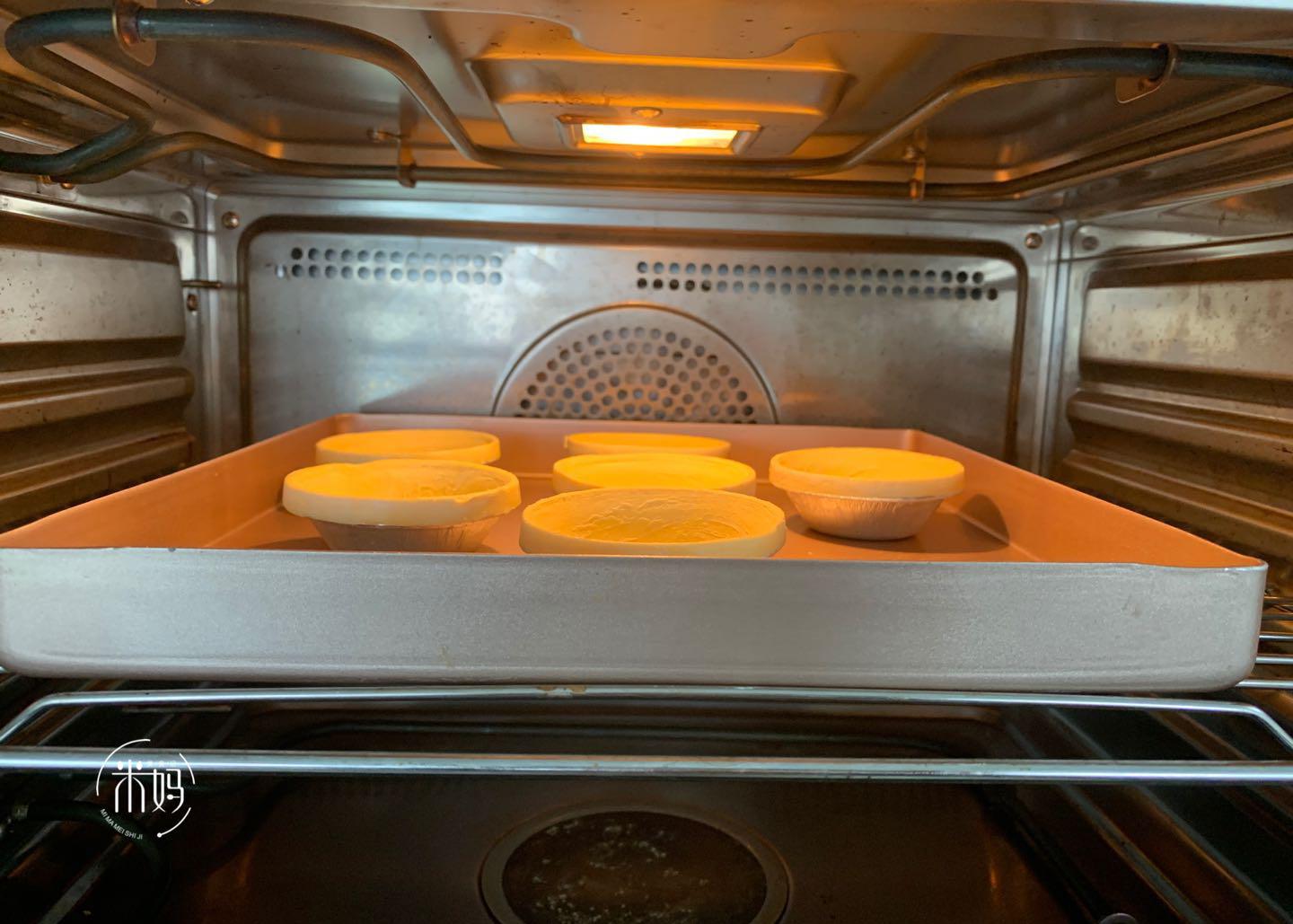 4。倒入蛋酸皮肤,倒7点。温暖烤箱后,将其放在烤箱200度上和下管中8分钟,然后将其取出冷却。