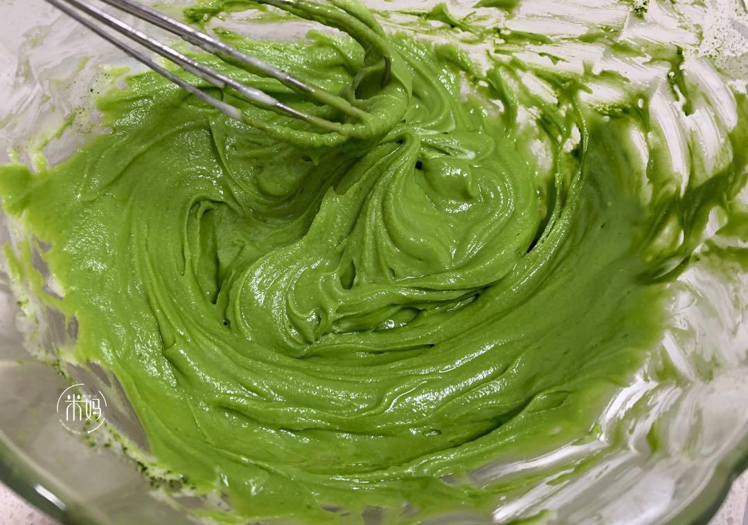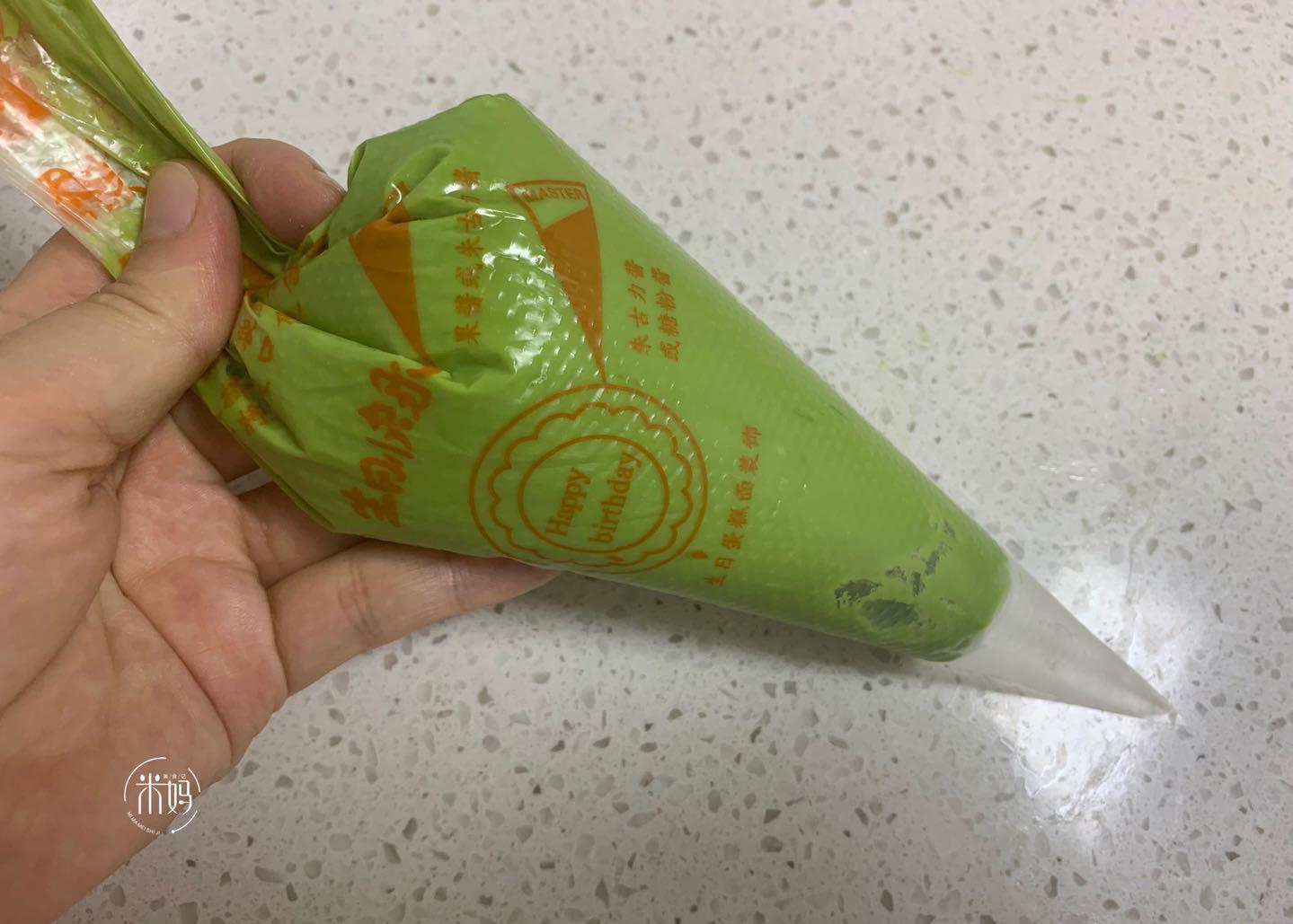 7。将抹茶巧克力放入装饰袋中。