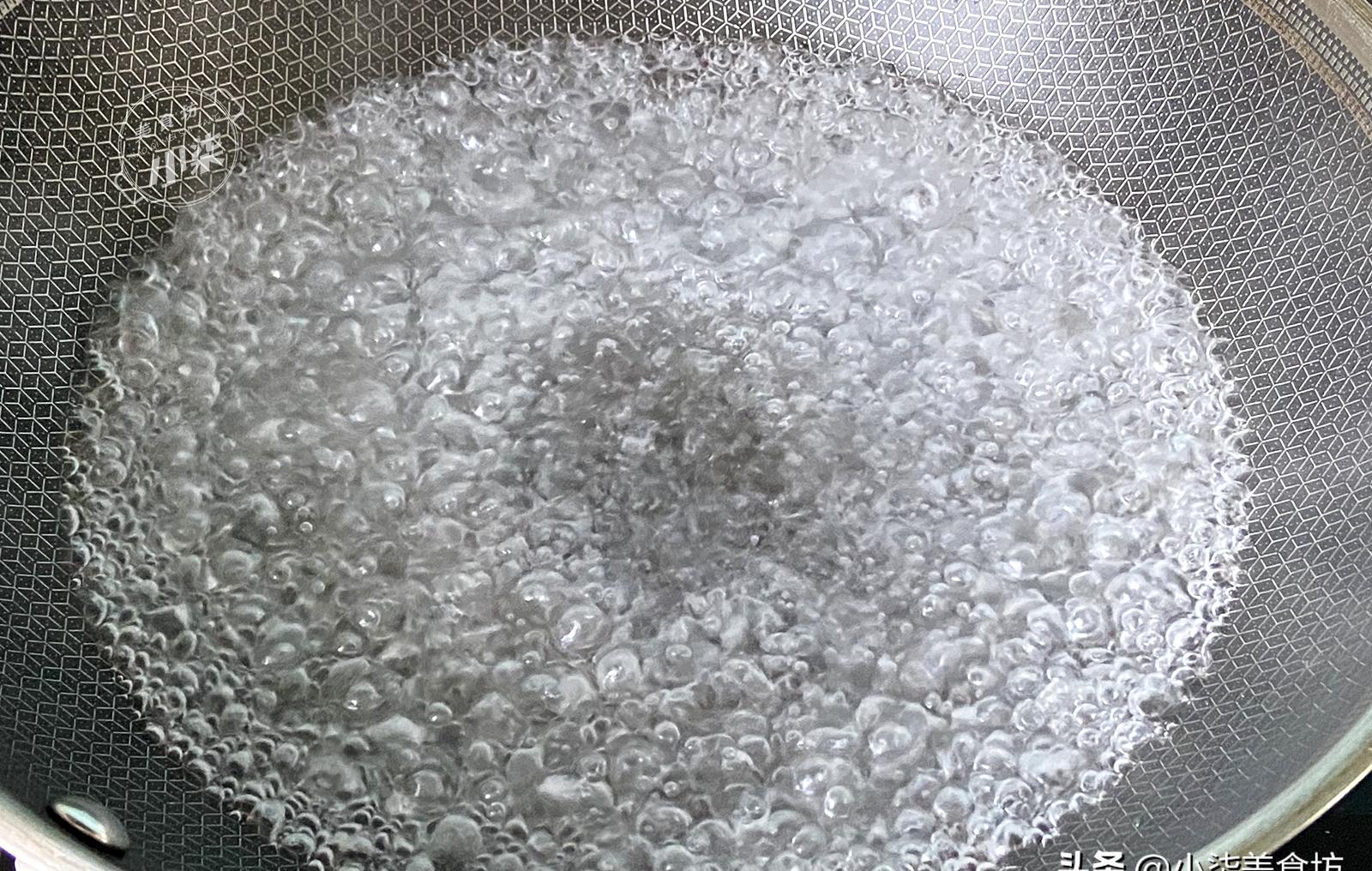 5。将一锅水倒在锅中。高温沸腾后,只需带一个大气泡即可。不要关闭热量。