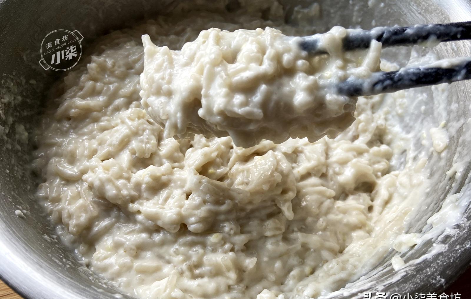 8。搅拌面糊,等待一点冷却。用一只手戴手套,以防止面糊粘在手上。操作并不容易。抓住一组面糊,用老虎嘴挤压球。