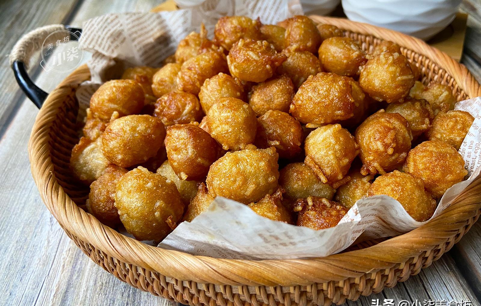 12。所有球都被炸了,您可以在篮子里吃。一旦锅里就可以美味酥脆。