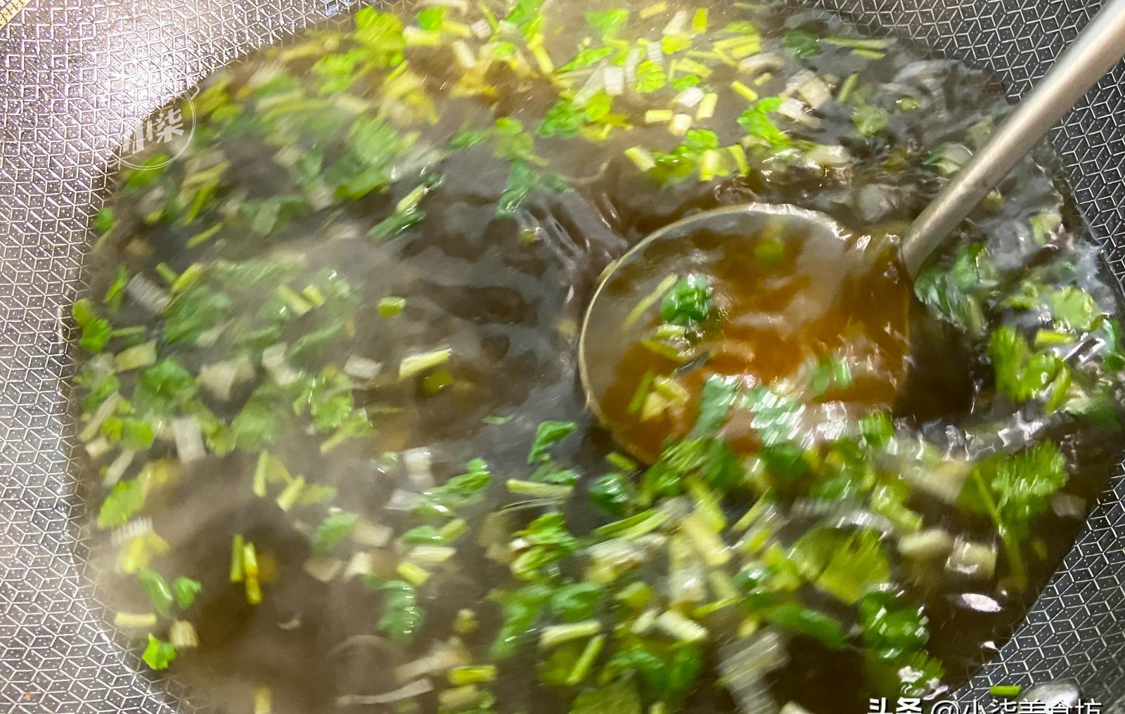 13.接下来,您可以简单地调整酸汤,绿色洋葱锅,加水加入生酱,醋,盐调味,终于撒了一些香菜,在碗里sc起,加一个球以食用它,因此,制作制作的药汤是开胃和开胃的。