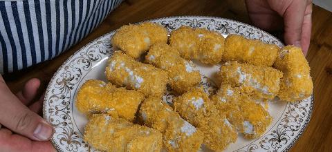 3。按照这种方法包裹所有香蕉并开始油炸。