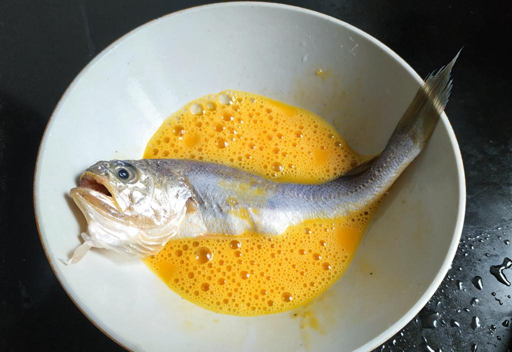 3。将小黄色的小鳄鱼放在鸡蛋液体中,粘贴鸡蛋液体,