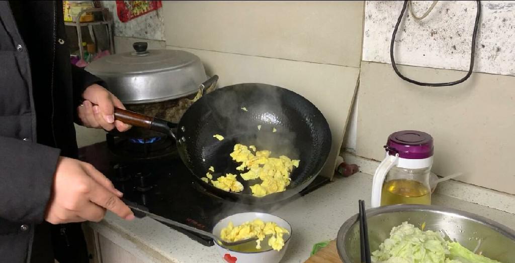 第三:先加热锅,然后倒入油。这不会粘在锅上。首先油炸鸡蛋,然后搅拌鸡蛋。