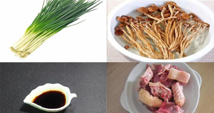 准备成分:200克干茶树蘑菇,50克猪肚,洋葱,姜和大蒜