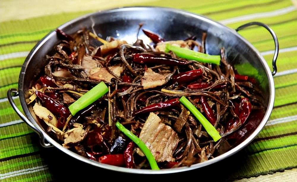 4。将油倒入锅中,用低火加热,加入切碎的豆糊,搅拌直至香气变香,变成中火,加入猪肚切片,绿洋葱,姜和大蒜片,搅拌直至肉变成白色,然后加入干辣椒,胡椒粉和茶树蘑菇。搅拌5分钟后,加入盐,深酱油,糖,均匀搅拌。最后,倒入水和淀粉,然后倒入芝麻油。