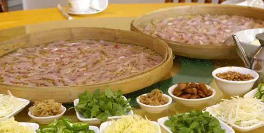 5。Wuhua县的大多数方法都将切割的鱼片放入装满大蒜和醋浸泡一会儿的碗中,然后再捡起,然后将它们放入倒入纯花生油的碗中,然后将它们握在一定数量。在各自的决心中,将它们与每个人(例如花生,姜碎,houttuynia cordata,Lemongrass,lemongrass,green洋葱,胡椒粉等)所需的成分混合在一起。