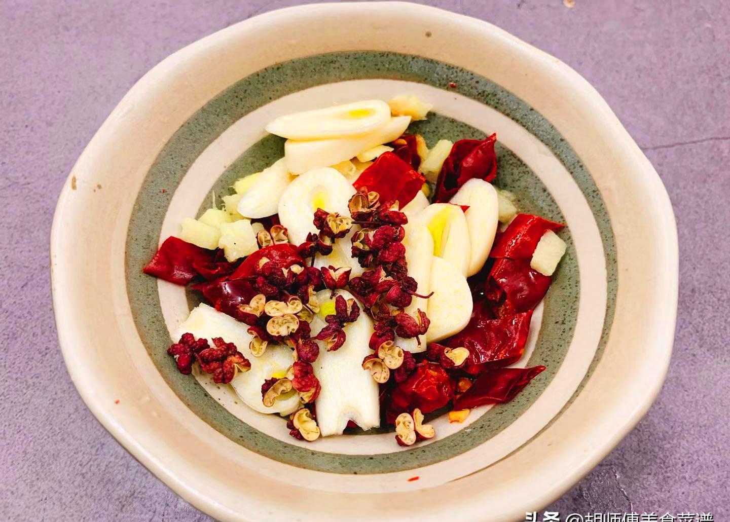 2。干辣椒,大蒜,红辣椒和碎姜需要放在油底锅中。您不能先放干辣椒和红辣椒,因为大蒜丁香和切碎的姜含有水,这可以降低油的温度并使辣椒和红辣椒干燥。不要泥泞。
