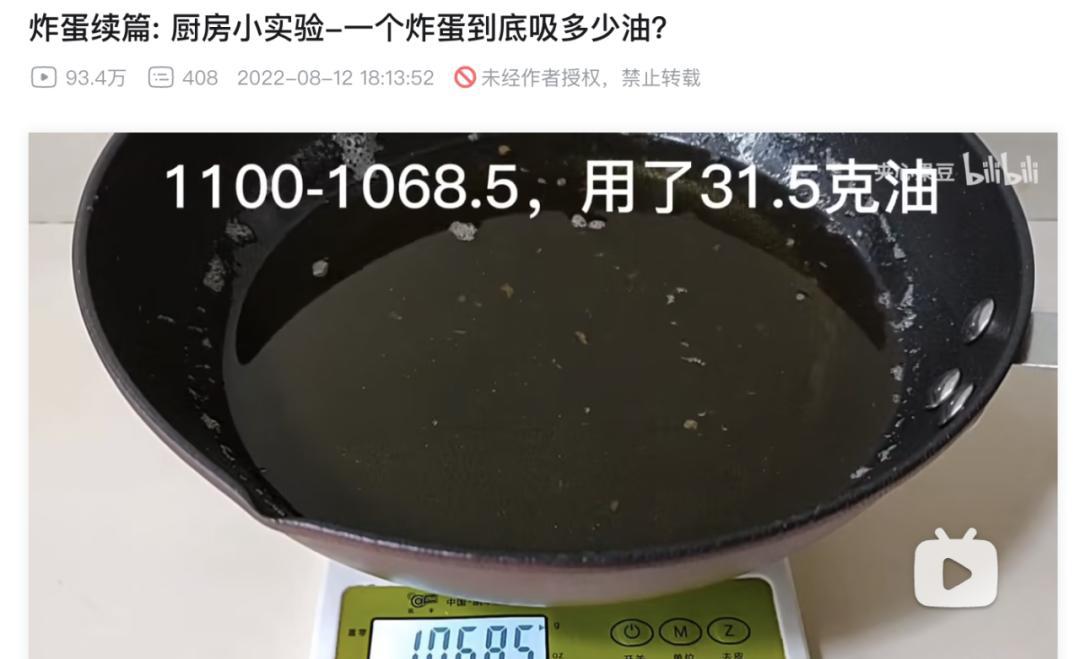 一些网民进行了实验,以测试可以吸收多少油,结果相似:使用一个鸡蛋时,油炸后的油小于30克。