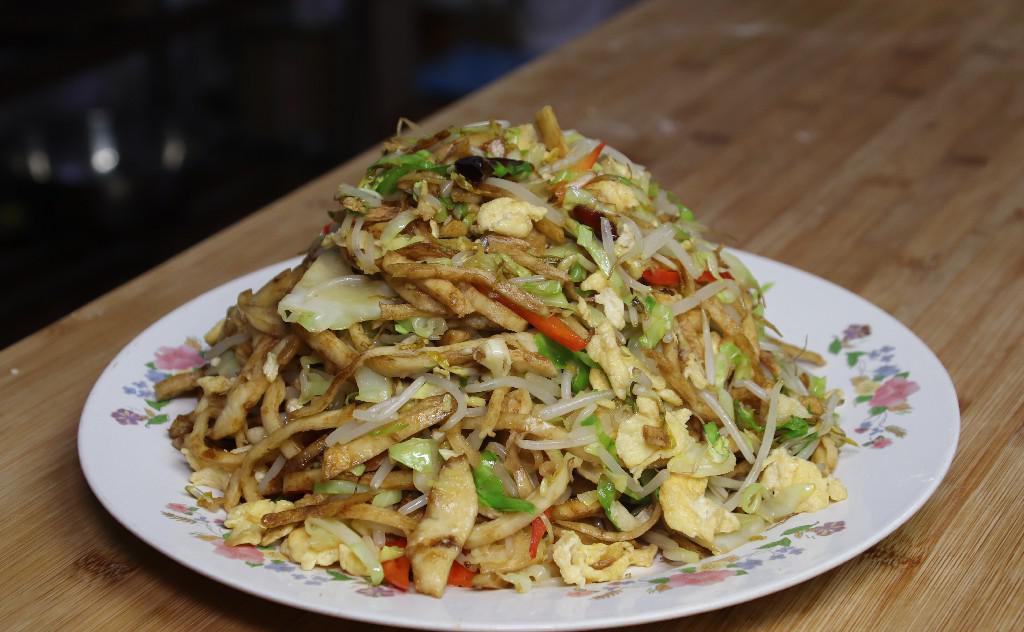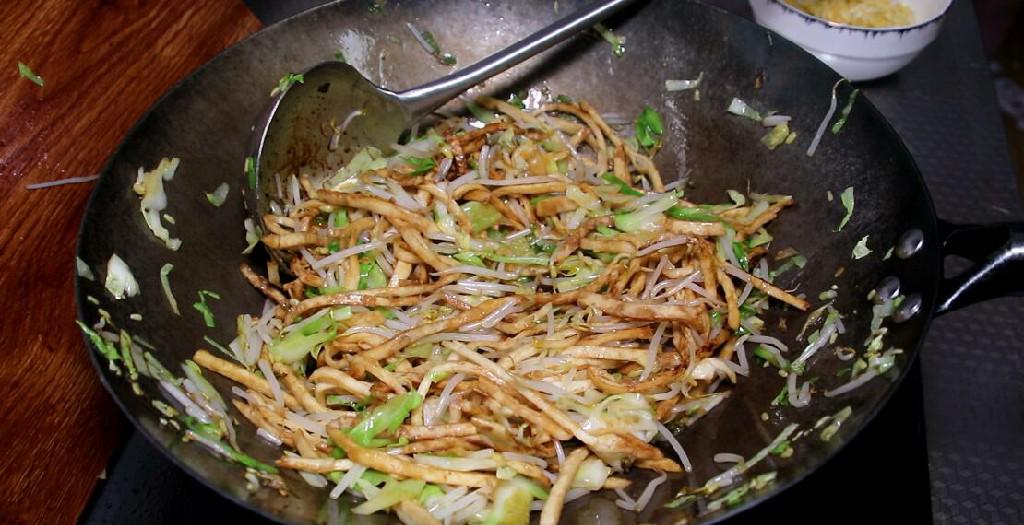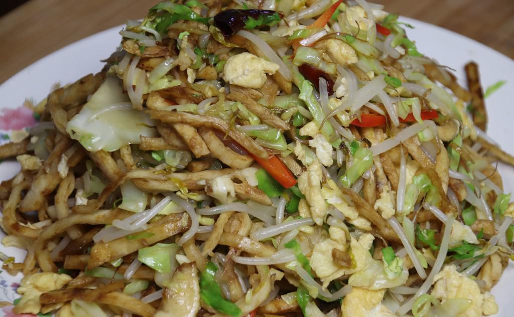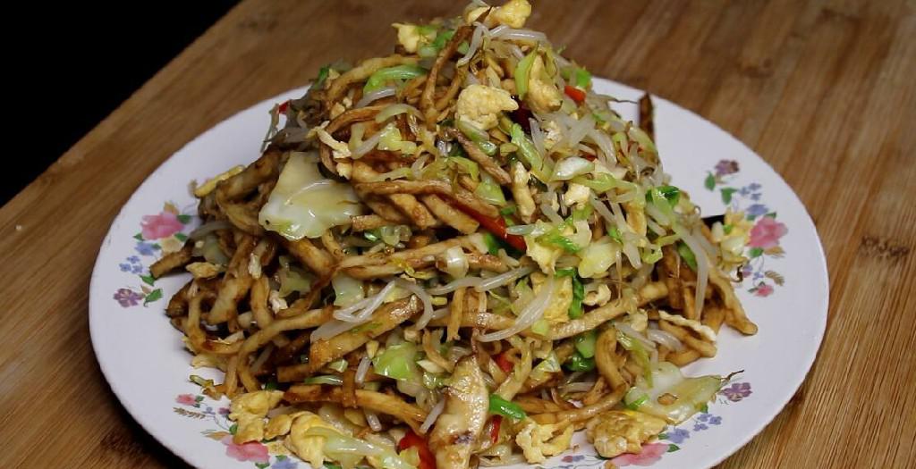实际上,油炸蛋糕是我们北部的传统美味佳肴。它们被切成细条或丝状形状,然后用油搅拌。它们分为素食和肉炸。通常,现在有更多的素食蛋糕。搅拌时,通常会添加豆芽和蔬菜。油炸味道新鲜,香气和美味。通常,您可以一口气吃一个大盘子。
