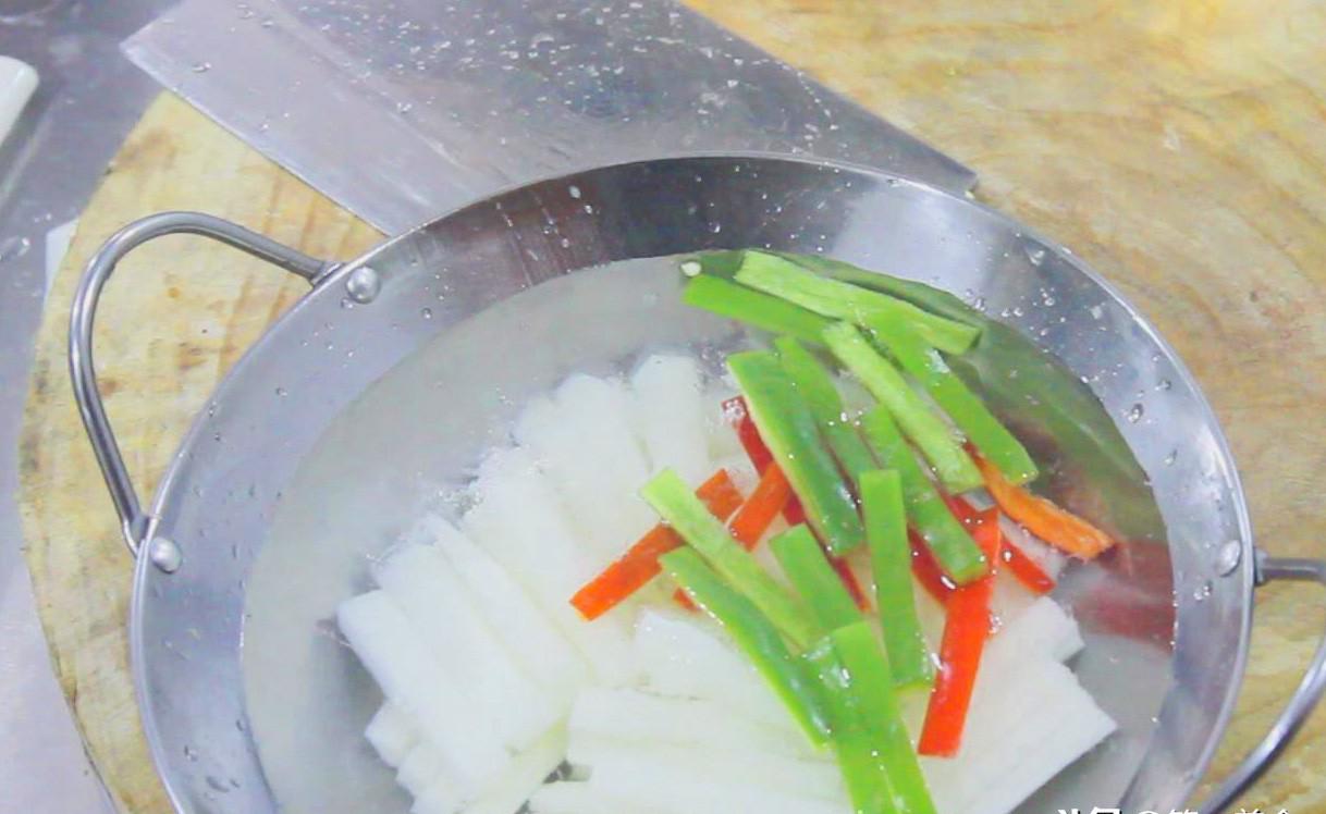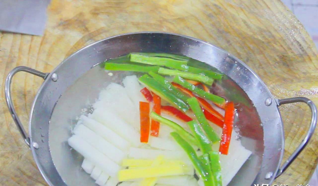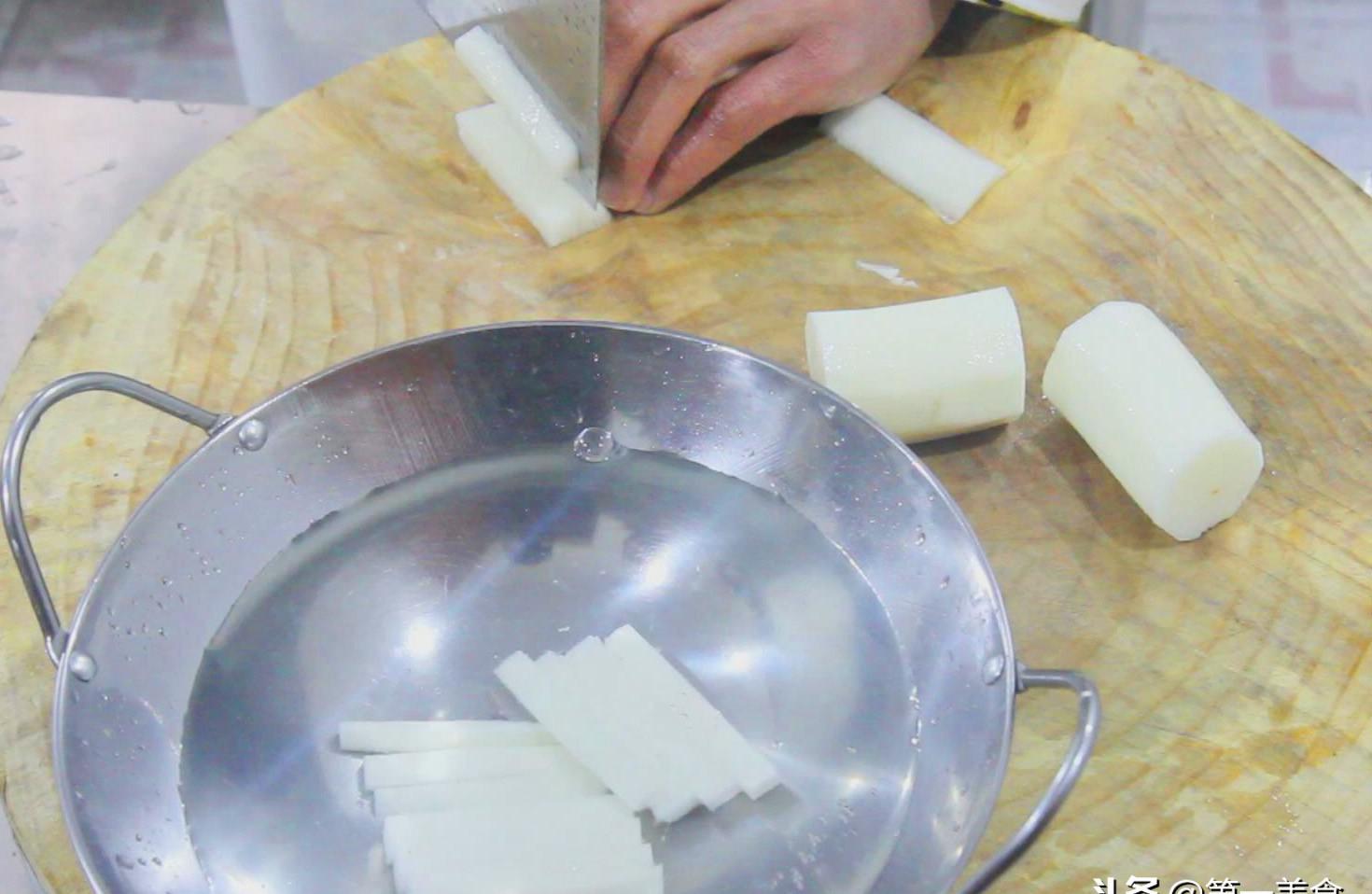 切断山药的皮肤,将其切成长条。快速将其浸泡在清洁的水中。将山药浸入清洁的水中可以防止山药氧化和变黑。