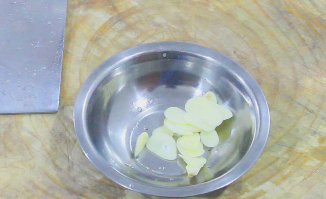 将少量植物油倒入锅中,并使用未燃料的植物油来防止炸山药变成黑色和变色。倒入大蒜片并炒菜,加入一半的水,然后在水沸腾后,倒入山药并炒。