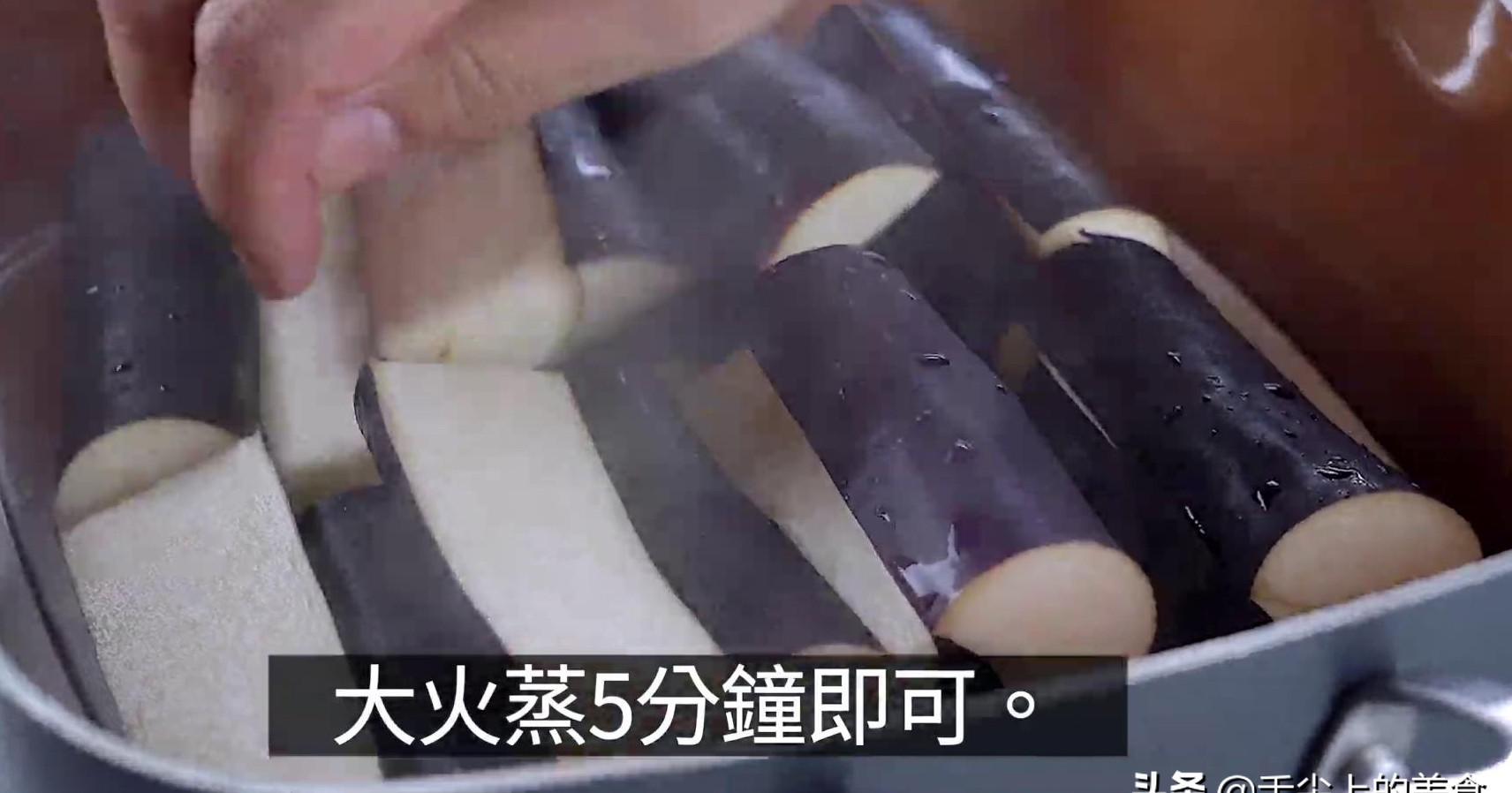 步骤4:将茄子放入,用高火盖住锅并蒸5分钟。