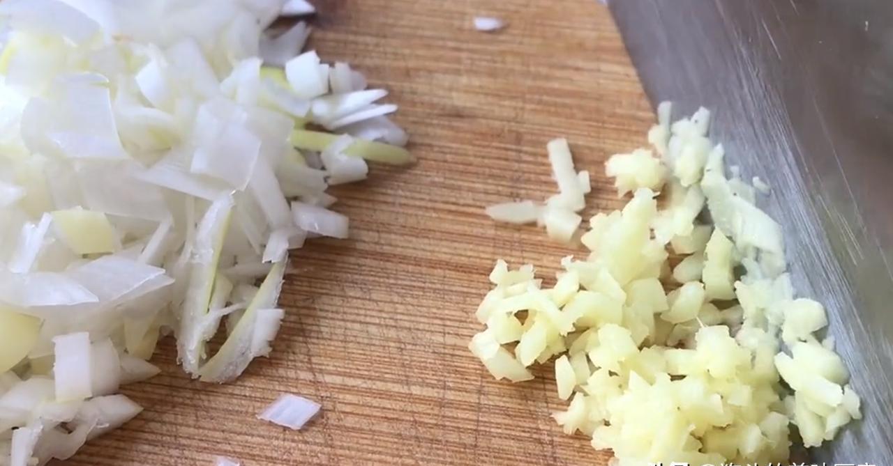 4。将洋葱和姜切成粉末,放在一旁放置。