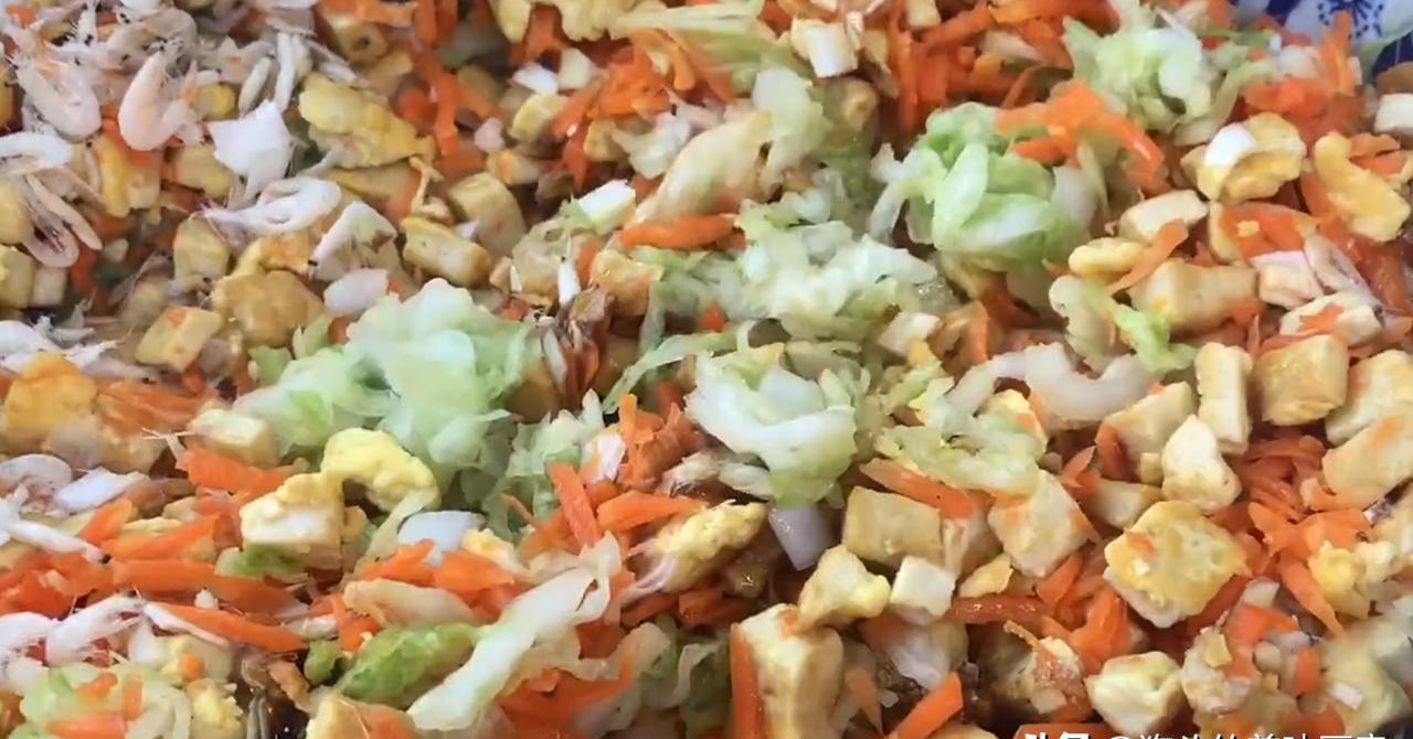 几片白菜,胡萝卜,一块豆腐,2个鸡蛋,切碎的葱和生姜,适当量的盐,少量虾皮,适当量的牡蛎酱,适当的淡酱油,适当的盐,适当的盐,适当的盐,适当的胡椒粉,适当的胡椒粉,适当的鸡肉鸡肉和少量芝麻油。