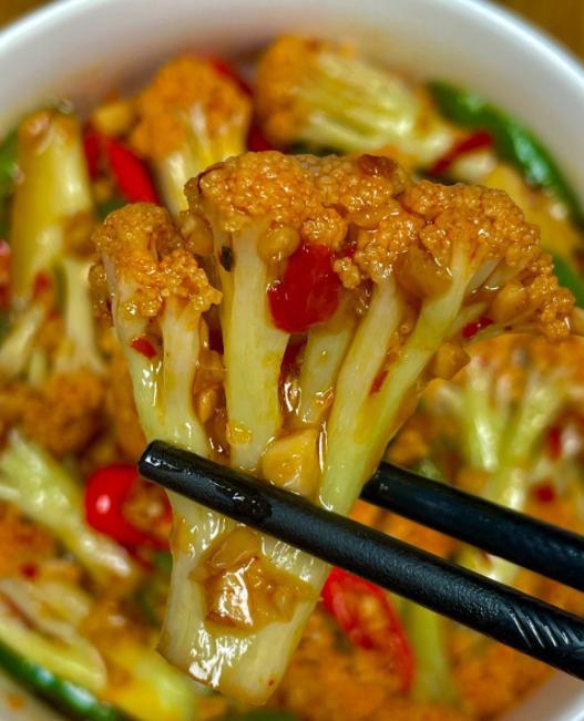 7。快速搅拌并留下锅:保持中高温并快速炒2-3分钟,直到花椰菜煮熟并混合味道。然后将盘子放在盘子上,并准备上菜。