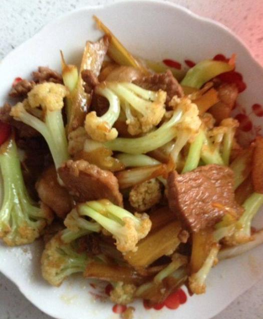 5。加入花椰菜:将分隔的花椰菜放入锅中,均匀搅拌,以使花椰菜吸收肉类的香气。