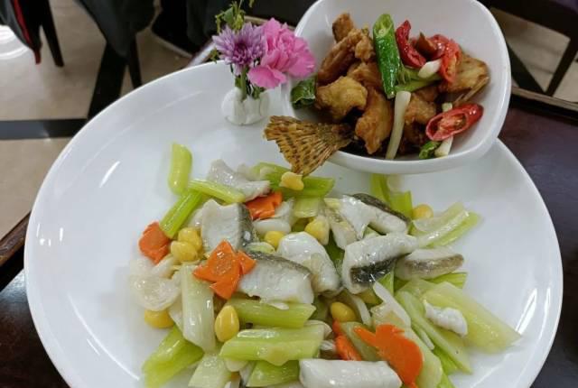 骨气的海鲈鱼:吃两条鱼,用一层生粉腌制鱼骨头,将它们炸在油底锅中直至金黄色。将鱼肉用油煮沸,用蓝芹菜片搅拌,然后调味,然后再离开锅。鱼骨头是金色的,芹菜香水无处不在,鱼肉嫩嫩可口。