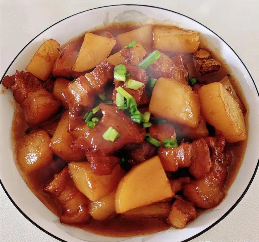当炖猪肉遇到土豆时,这是一场美味的盛宴。将土豆切成碎片,将炖猪肉即将炖时放入,然后继续炖。土豆吸收肉的香气,变得柔软可口。由于添加土豆,炖猪肉还增加了令人耳目一新的味道。肉类和蔬菜的结合在营养方面更丰富,这只是用一块石头杀死两只鸟。家里的孩子们急于吃它!
