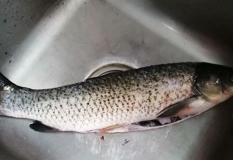 步骤1:洗草鲤,主要是要撕下腹部的黑色胶片。