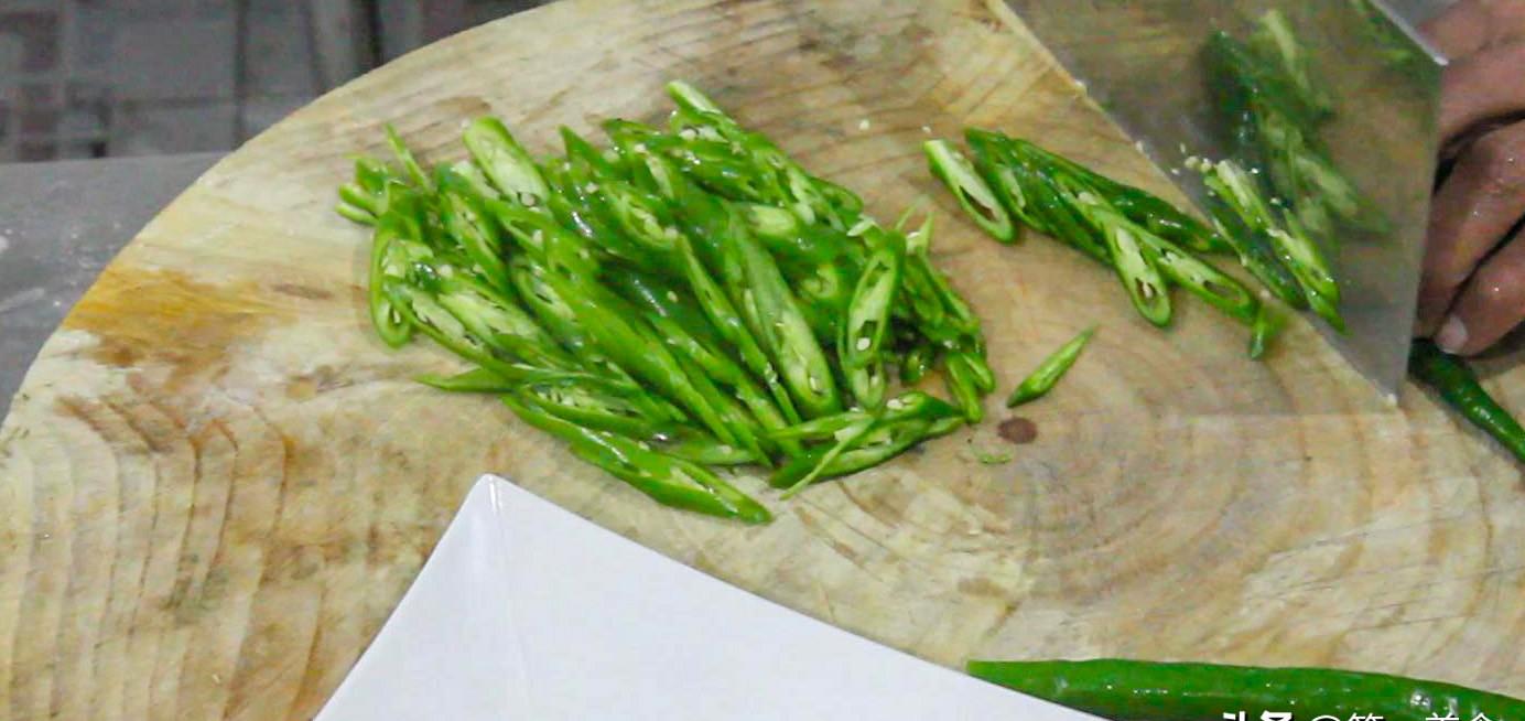 1.准备青椒一把,洗净后,用刀斜切成辣椒圈。