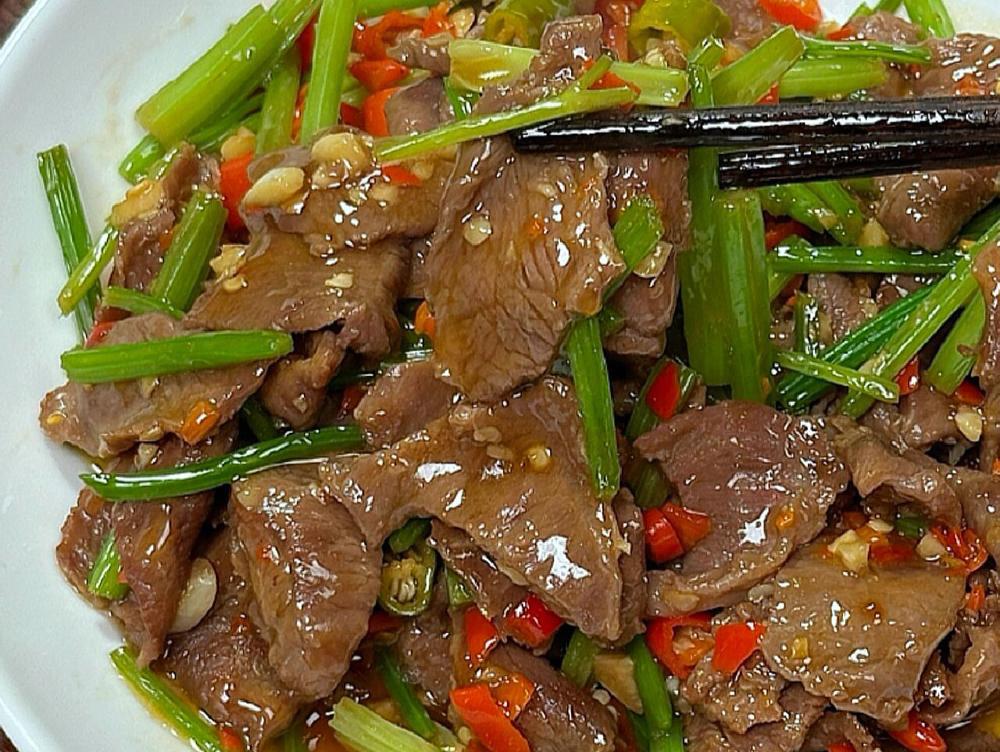只要提前备好菜谱,掌握几道拿手好菜,待时机成熟便可以呈献给好友,那么这道芹菜炒牛肉便是个不错的选择。