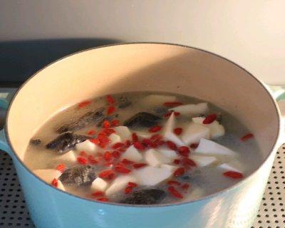 将乌鸡、山药、枸杞和枸杞叶放入汤锅中,加入适量的水,大火烧开后改小火炖煮2小时以上。期间要适时添加适量的清水,以保证汤的浓稠度。