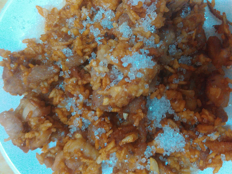13:炒至盐变成咖啡色,花生米噼里啪啦的声音即可。