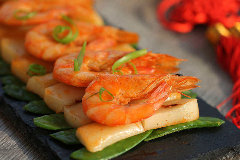 年糕2000克;鲜虾150克;荷兰豆100克;