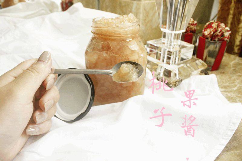 3:桃子给切成小丁,注意,要小一点,等等自己熬开了会比较好碾碎。为了做出无杂味的果酱,我在这给大家提醒一下,千万不要用平时家里拿来切肉切菜的砧板还有刀具,一定要用专门用来切水果的。
