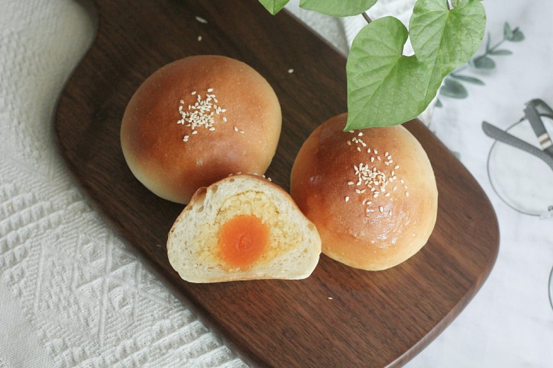 10:把拌匀的豆沙分成10分包入蛋黄