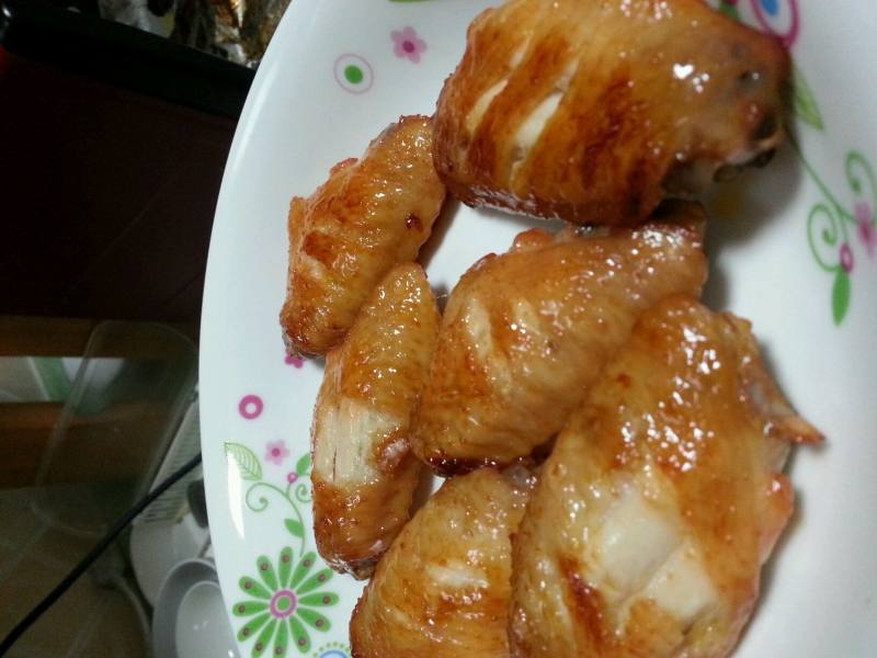 5:这个牌子的调料不是很甜,喜欢吃甜一些的话可以在腌制是拌入些蜂蜜或糖,可能是我烤太久的缘故,鸡翅有点干,下回再摸索吧