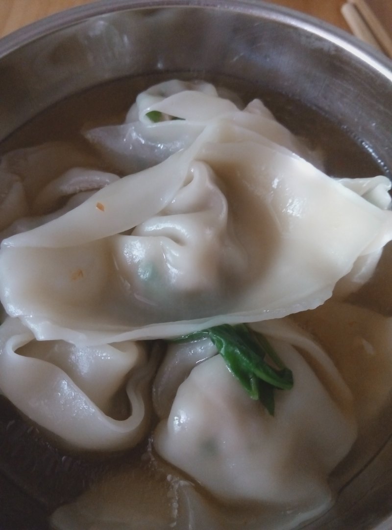6:煮至云吞浮起来就好了,再按个人喜好调味。(因为家里买的皮都是非常薄的,所以只能包一点点肉,否则煮烂了都没熟)。