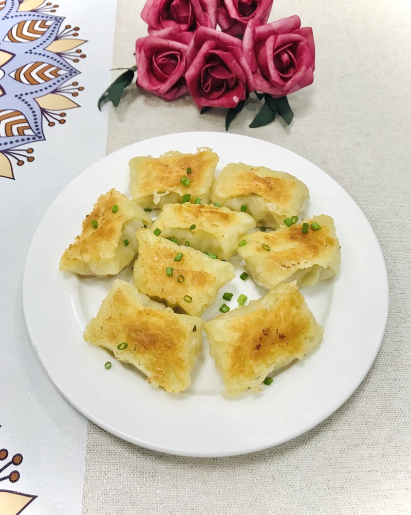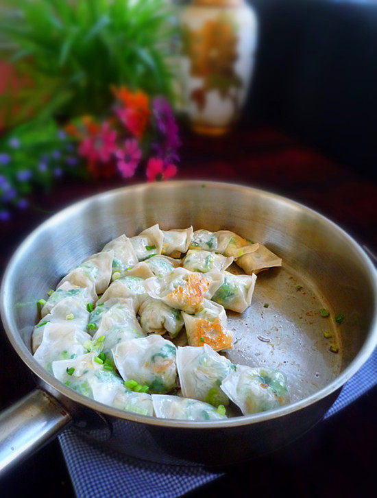 8:锅底下放适量油,把包好的云吞摆上,小火煎。
