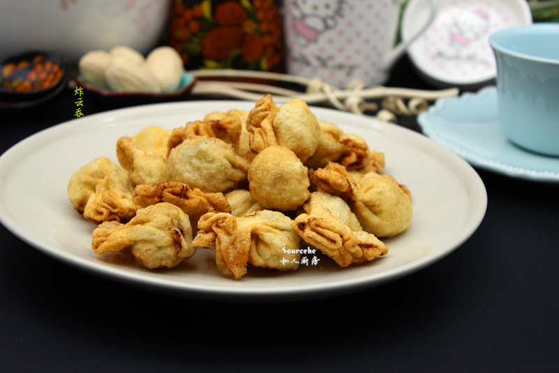 12:油温达到180度时候,放入做好的云吞,炸;PS:火温可以改小点;