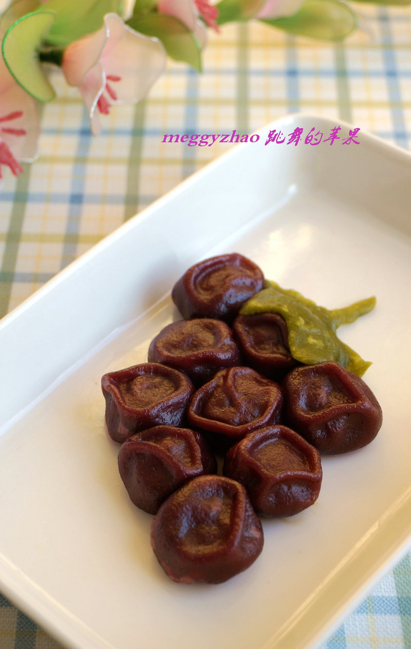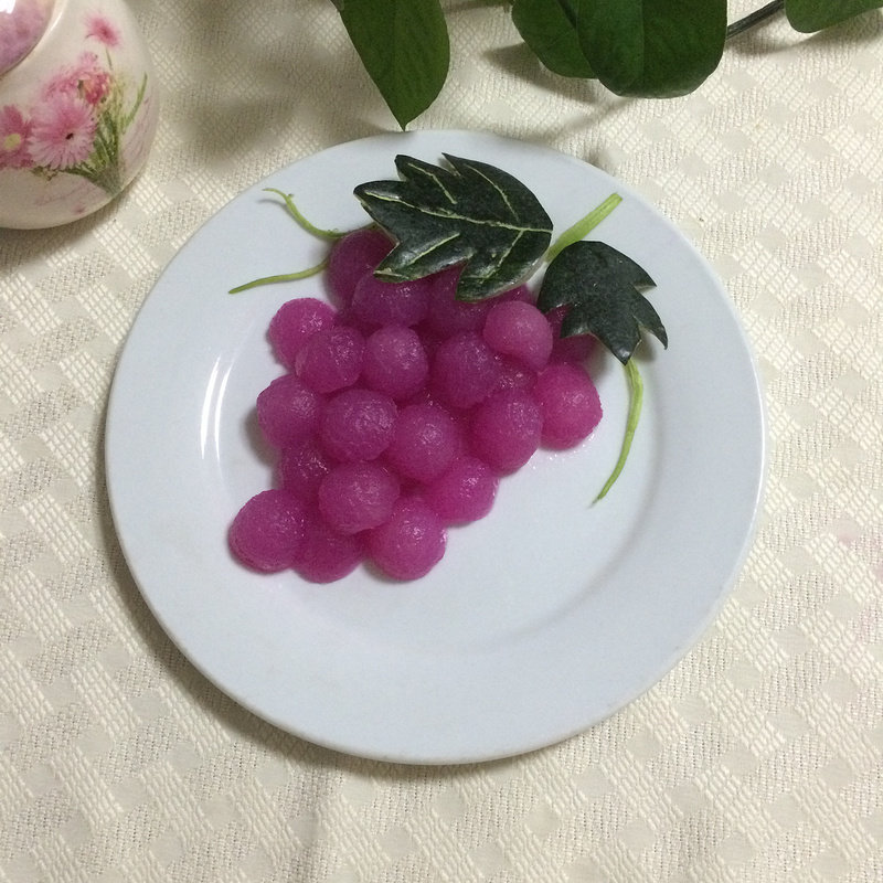 8:盘子上刷上植物油,把做好的葡萄组合在一起,放入蒸锅里蒸5分钟即可