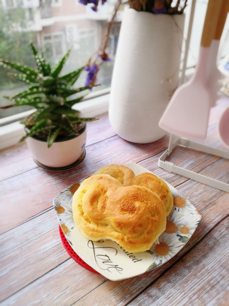 面团材料:面包粉200匙;牛奶110ml;酵母4克;黄油20克;鸡蛋1个;砂糖20克;盐2克;