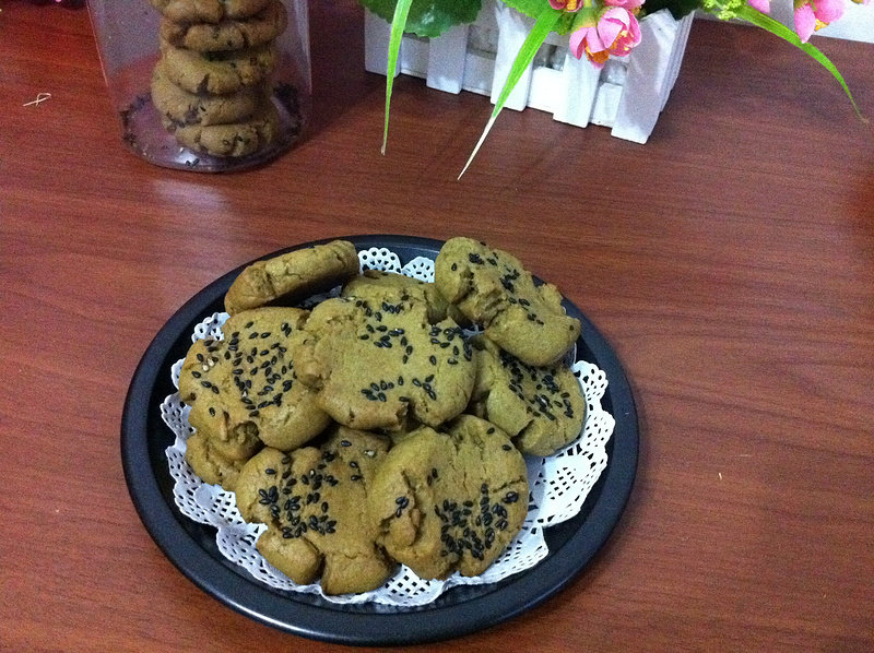 抹茶适量;泡打粉适量;黑芝麻适量;