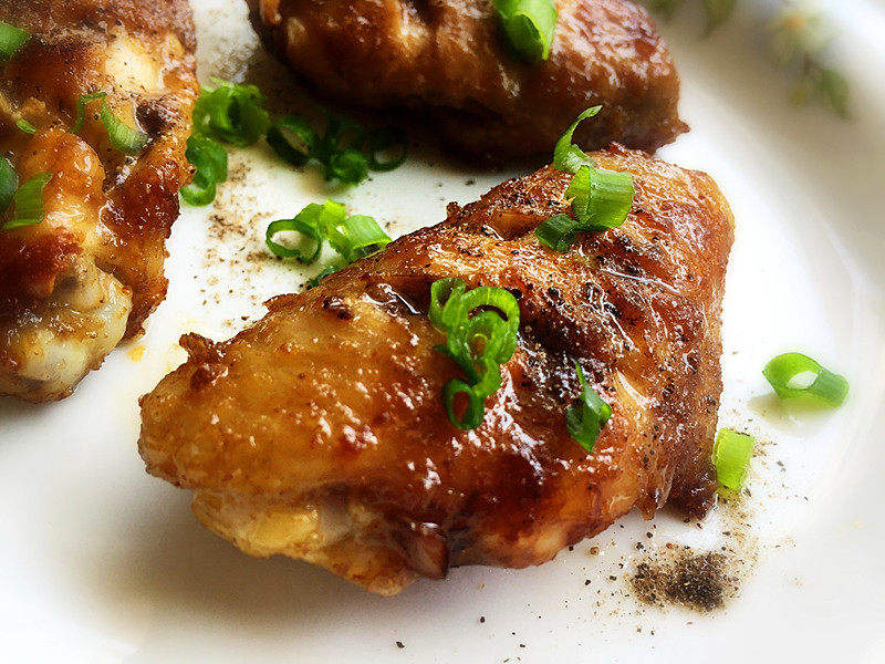 8:15分钟后鸡翅蒸好了,拿出来表面撒上小葱末。