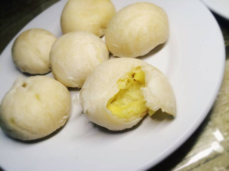 15:包入黑芝麻馅(黑芝麻馅分成30克一个的小剂子),包包子一样收口。