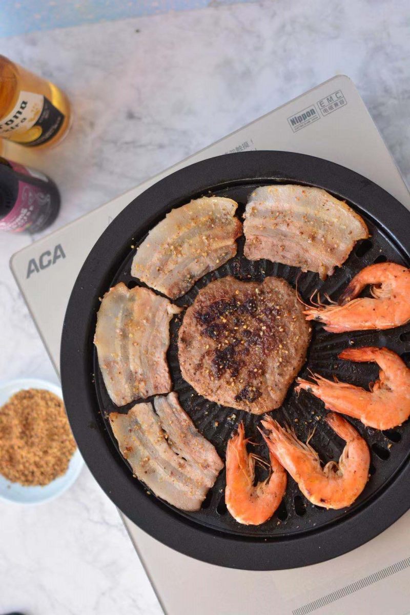 2:电陶炉上放烤肉盘,清洗干净,刷一遍油