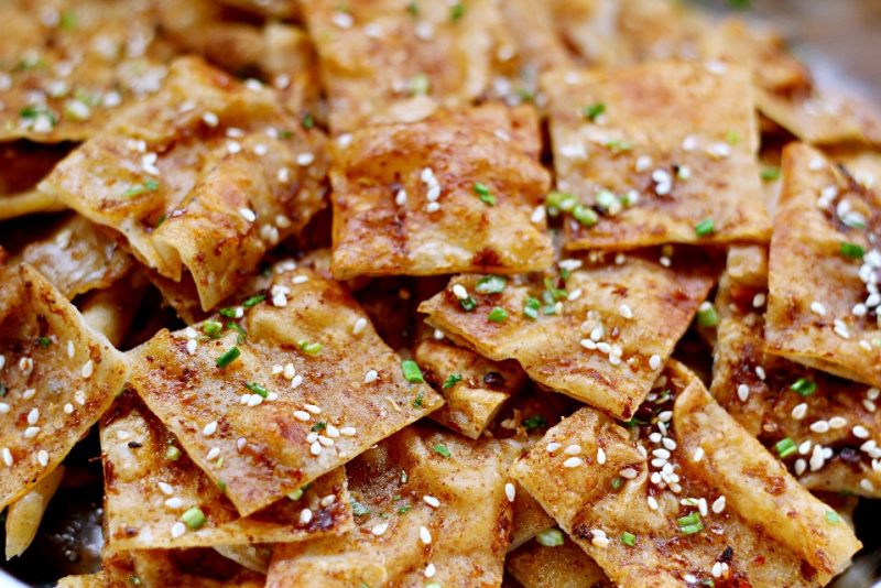 9:取出后,先切成长条,再叠起来,切小块,酱香饼完成!