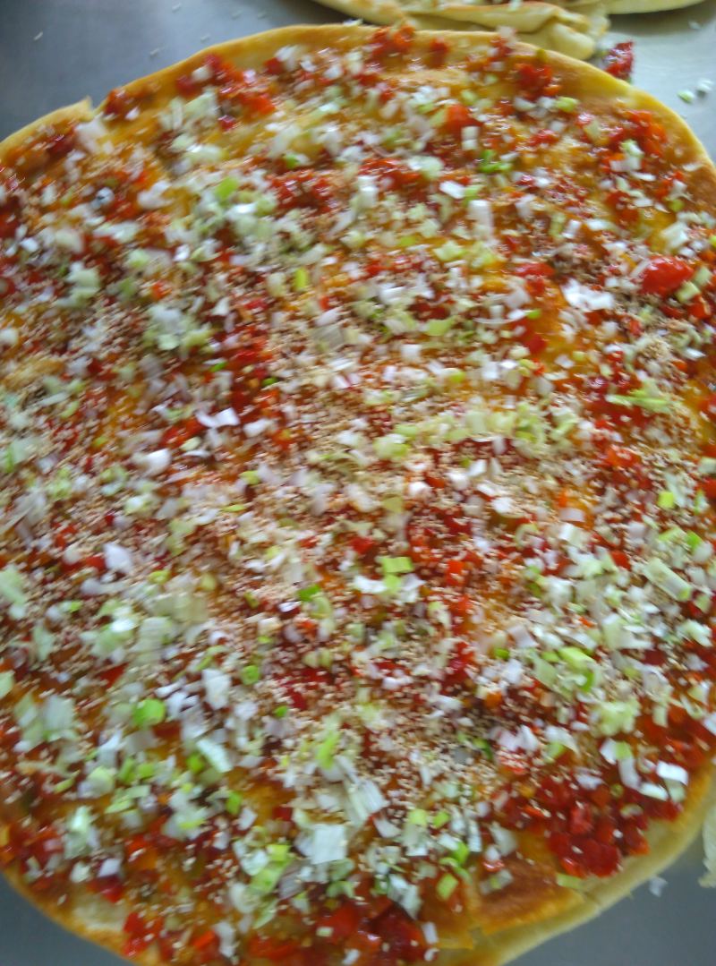 7:拿出来摸上辣酱,撒上葱末,再撒上熟芝麻,切成块!!!
