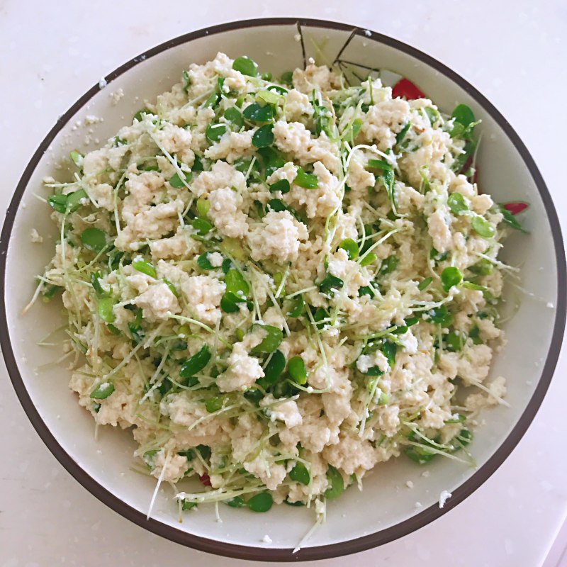 3:把香椿苗拌在里面就可以啦。香椿苗有特殊的香味,脆脆的。